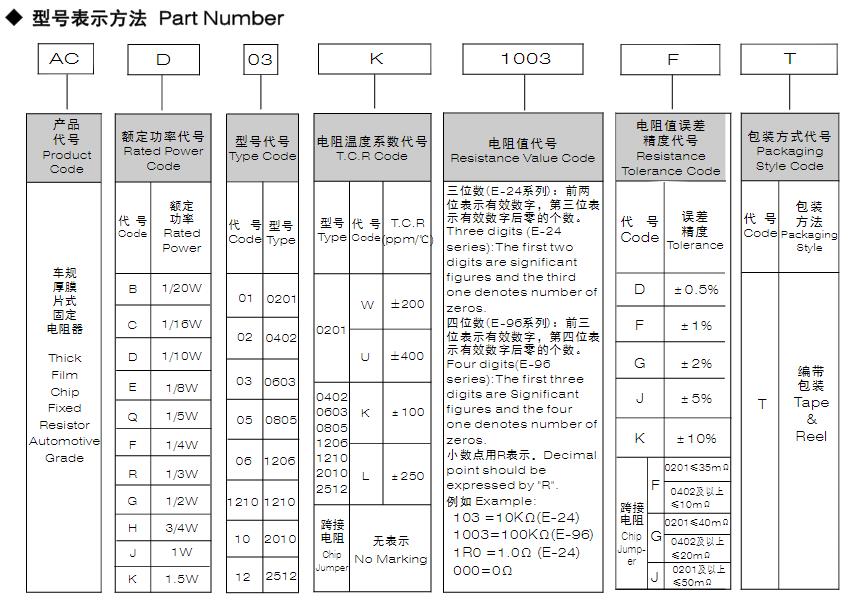 風(fēng)華車(chē)規(guī)厚膜片式固定電阻器型號(hào)命名規(guī)則: