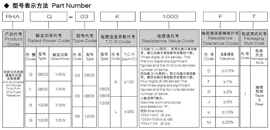 風(fēng)華高科抗硫化抗浪涌厚膜片式固定電阻器 型號(hào)命名規(guī)則: