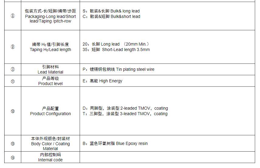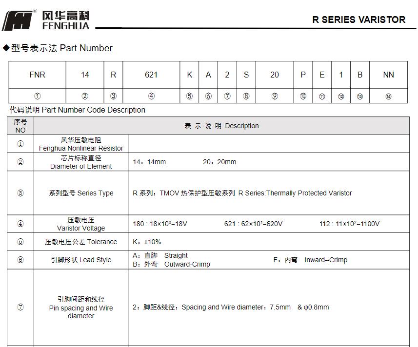 風(fēng)華高科R系列壓敏電阻器型號命名規(guī)則: