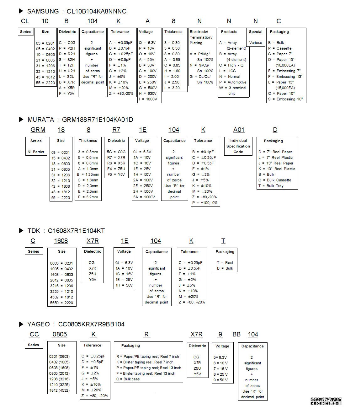 陶瓷貼片電容各大品牌命名規則: