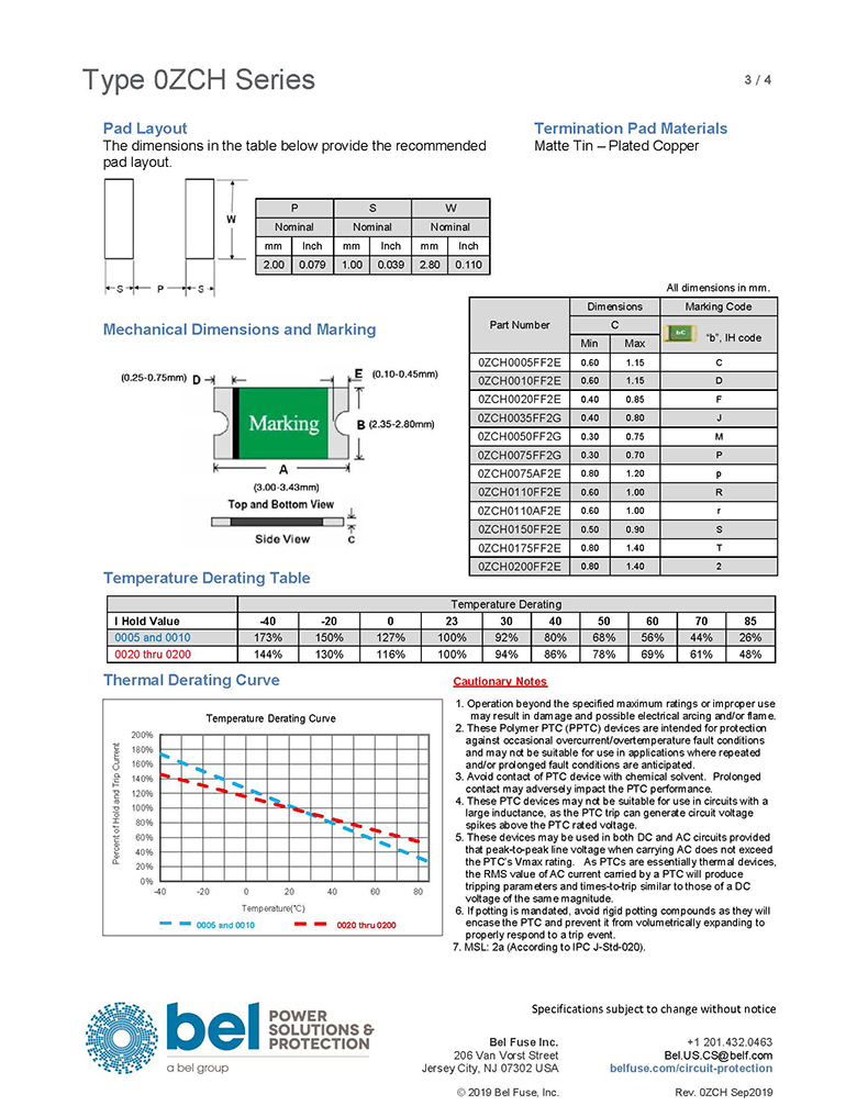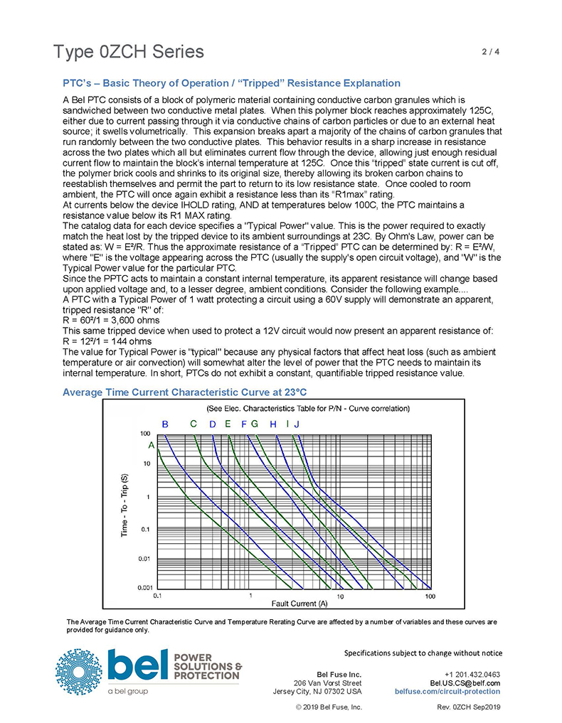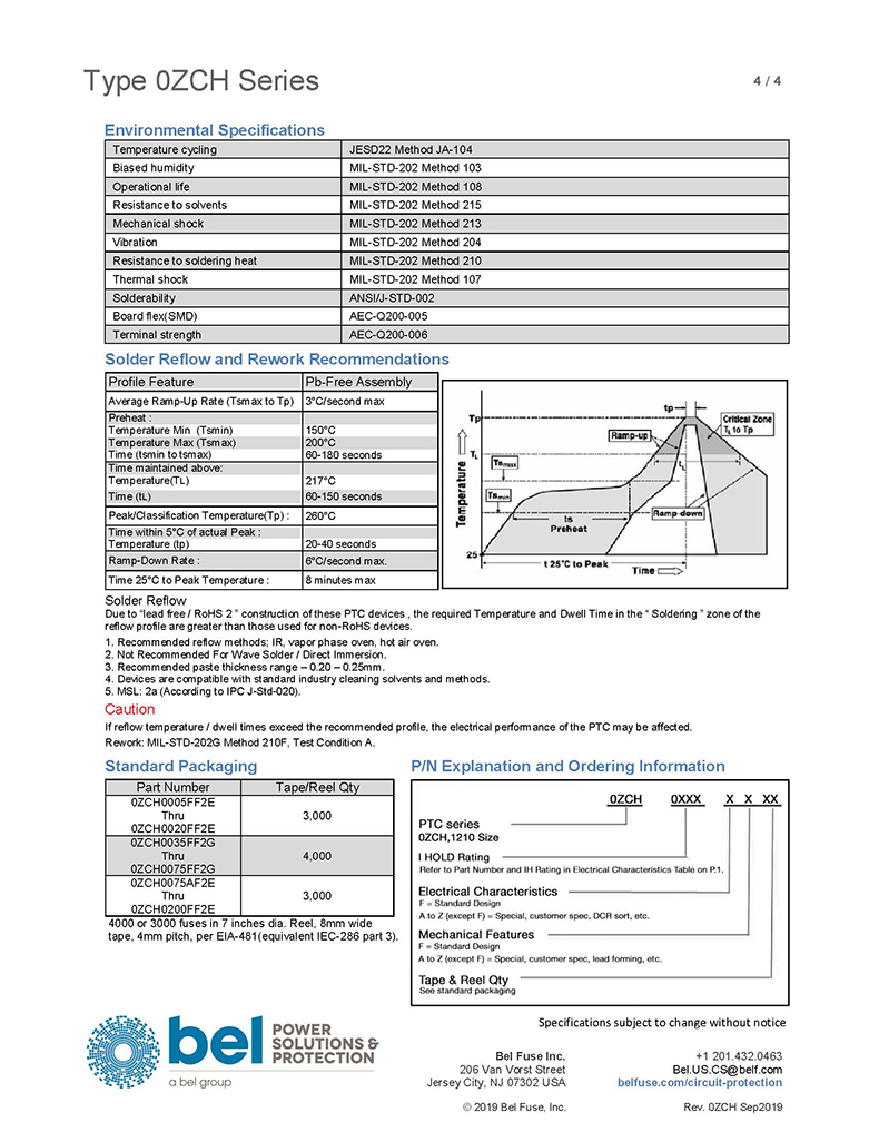 說明獨特的Bel(Bel)溫度保護裝置,增加了正溫度系數可復位功能,輕薄,SMT封裝。與我們的傳統保險絲產品系列相似,我們的可復位保險絲防止有害的過電流和短路情況。然而,我們的PTC設備也可以用來保護防止過溫條件不一定由過電流引起。Bel的PTC設備在通電后會復位電路被移除,故障被清除,電路重新通電。這種可復位保護電子設備保持完全功能,無需維修人員更換保險絲。
