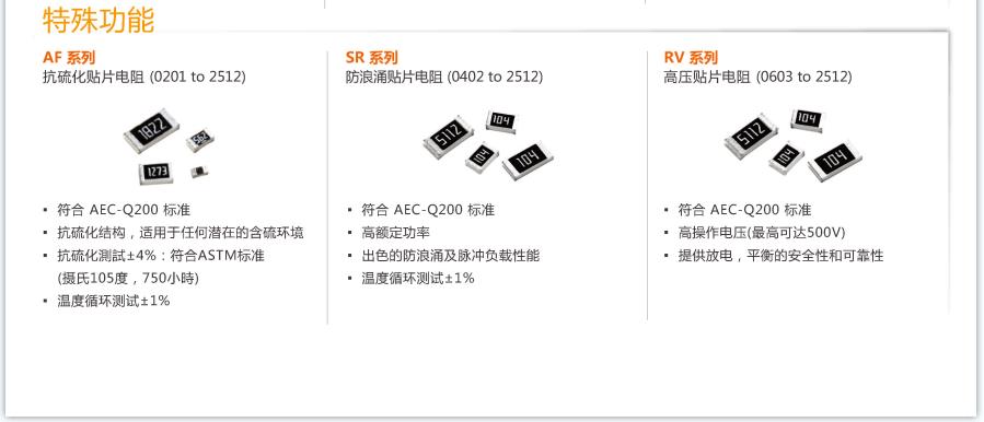 國巨貼片電阻:車用貼片電阻,電流感測微歐姆電阻,抗硫化貼片電阻,薄膜精密電阻,厚膜精密電阻,一般厚膜電阻,排阻與網絡排阻,高壓電阻