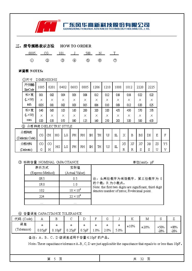 風華高科貼片電容命名規則對照表