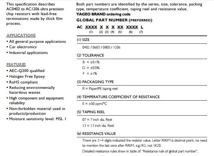 YAGEO_國(guó)巨車規(guī)電阻_國(guó)巨汽車級(jí)電阻_AC系列_國(guó)巨代理商