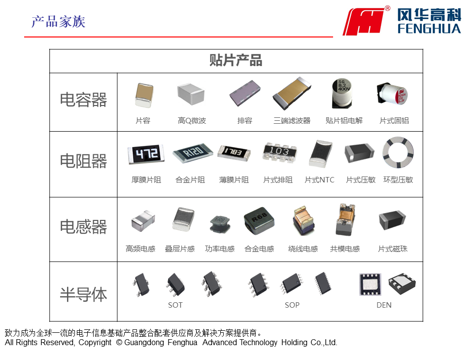 風華高科具有完整與成熟的產品鏈,具備為通訊類、消費類、計算機類、汽車電子類、照明電器類等電子整機整合配套供貨的大規模生產能力。