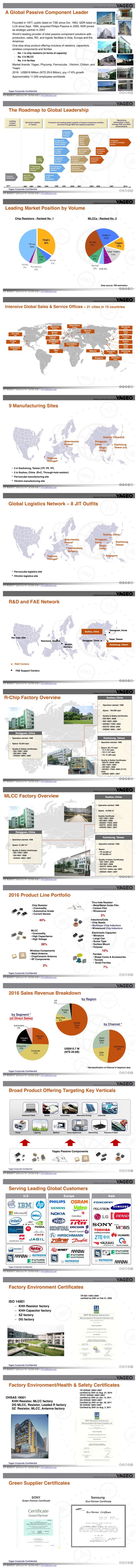國巨公司成立于1977年,為全球領先的被動元件服務供應商,其生產及銷售據點涵蓋亞洲、歐洲及美洲。 國巨公司為提供客戶「一次購足服務」, 供應完整的產品組合,包括一般品和特殊品的電阻、電容及無線元件,以滿足客戶各種不同領域應用的需求。
