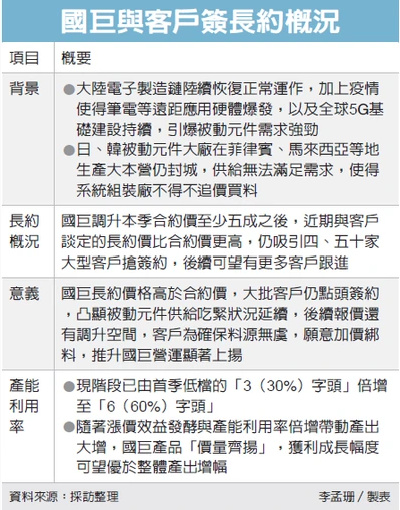 國巨:產能利用率倍增至60%,長約漲價